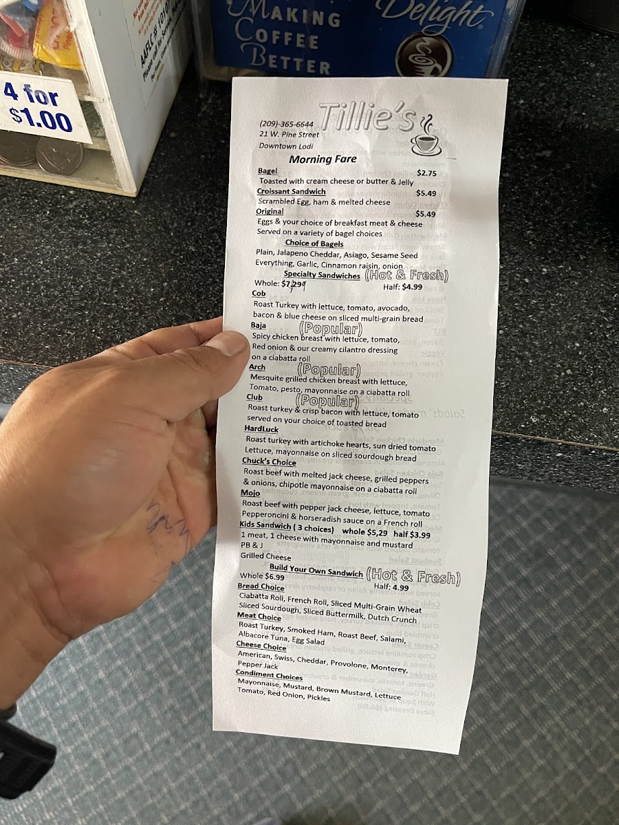 The menu at Tillie's Fine Food & Coffee Company offers a variety of options across several categories, suitable for breakfast, lunch, and casual dining. Visitors can find a selection of sandwiches and salads featuring a range of fresh ingredients and dressings. Examples include spicy and grilled chicken options served with fresh vegetables and specialty dressings.